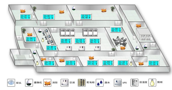 完善的机房监控系统应该是能够实现对从设备运行情况到机柜微环境再到机房整体环境这样多层次的监控,并能重点实现对设备内部的监控,我们都知道,机柜内的微环境是设备正常运行所需要的物理环境。机柜微环境参数最能体现设备所处的实际运行物理环境的情况,所以实现对机柜内微环境的监控也相当重要。机房各个点的环境参数值是不同的,因此机房内整体环境监测的参数不能体现各机柜微环境参数,更不能体现重要设备内部的环境。也就是说,即使机房整体环境参数正常,IT设备所在处的环境也不一定正常。所以说机房的整体环境监控的重要性次于对设备的监控和对机柜内微环境的监控。